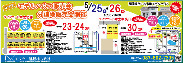 5月25日(土)・26日(日) 木太町モデルハウス・分譲地販売会を開催!