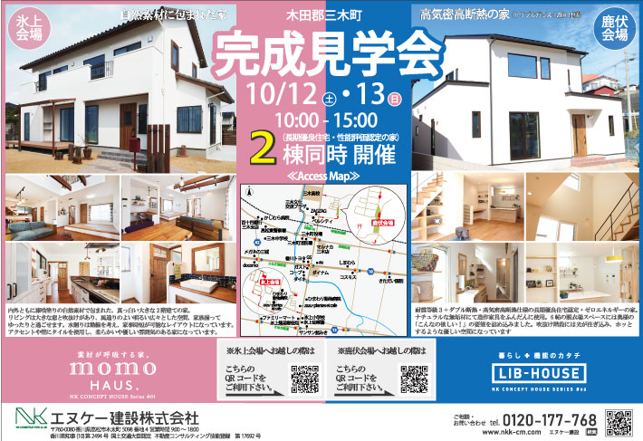 10月12日(土)・13日(日)木田郡三木町にて2棟同時完成見学会 開催!!