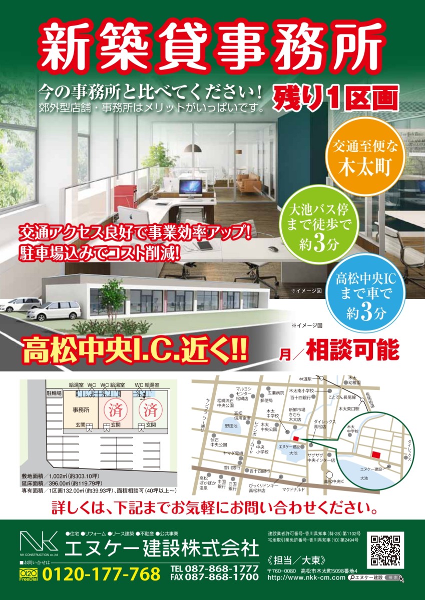 エヌケー建設の新着情報 ALL イベント お知らせ ARCHIVES NK NEWS MENU BACK NUMBERS 2021年 (24) 2020年 (37) 2019年 (43) 2018年 (32) 2017年 (40) 2016年 (12) 2015年 (2) 2014年 (7) 2013年 (7) ALLイベント お知らせ 木太町貸事務所残り1区画! 2020.09.16 木太町貸事務所残り1区画! 一般の事務所と違った外観のデザインで、落ち着きある事務所です。 高松中央IC近くの立地で、交通アクセス良好。さらに事業効率アップ。 入居して頂いた御客様のお仕事を全力でサポートさせて頂きます。 賃料等の詳しい内容が気になる方は、お気軽にお問合せください。