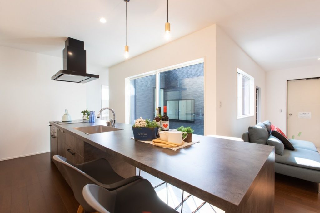今回の完成見学会は、オシャレでデザイン性の高い外観デザイン、広い中庭や開放的なリビング・キッチンの室内空間をご確認いただけます。