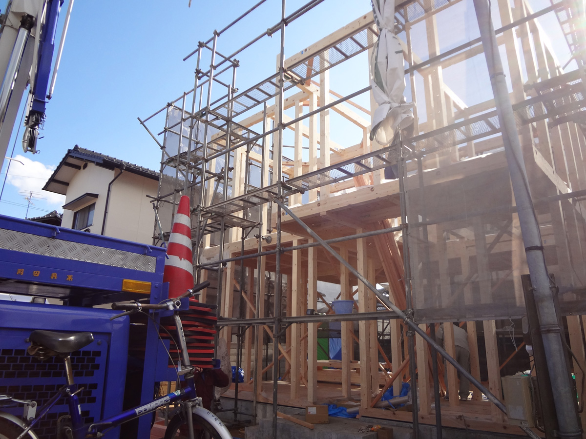 先日、多肥上町で棟上げを2日にわたり行いました。