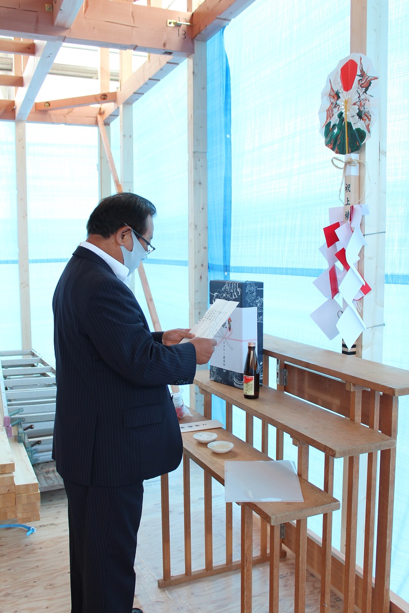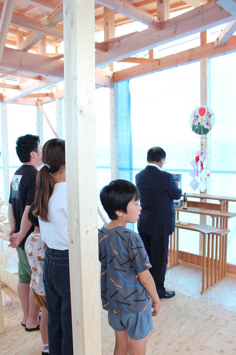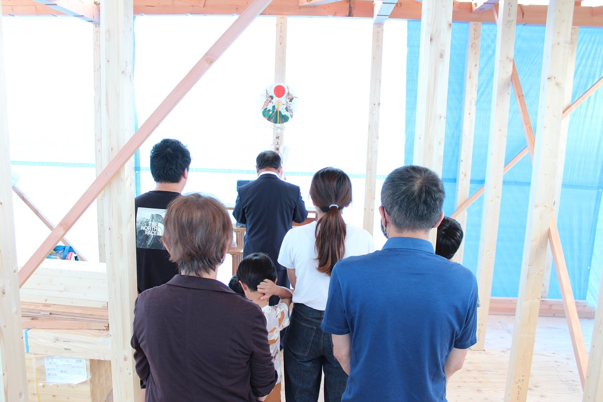 夕方、ご家族様そろって上棟祭を行いました。