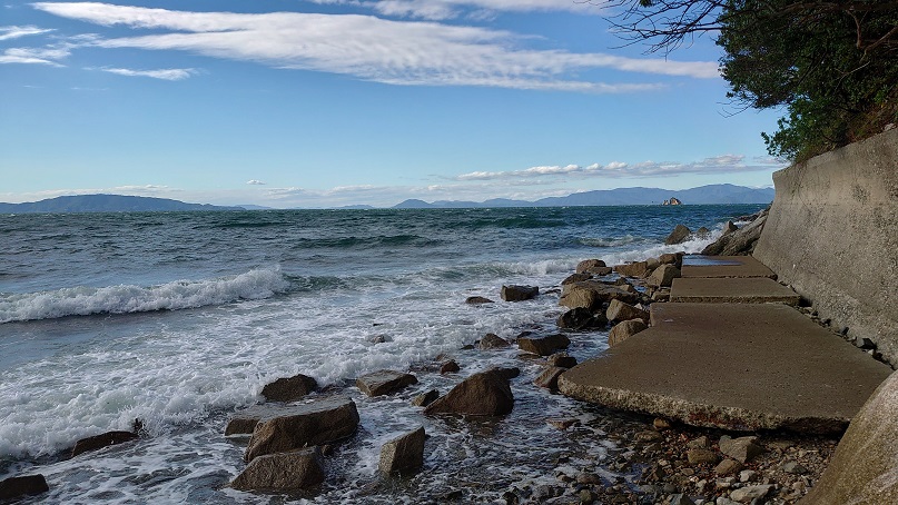 海のすぐそばを歩けます。