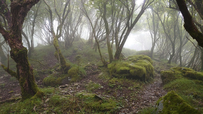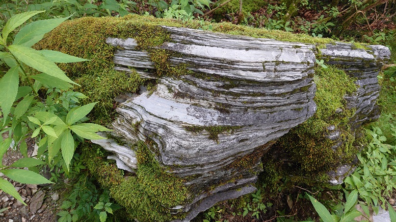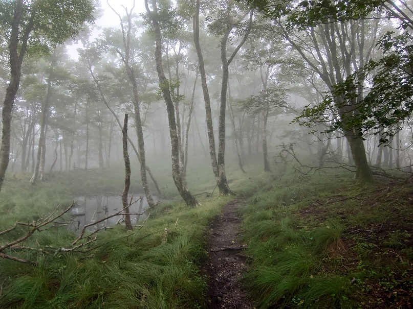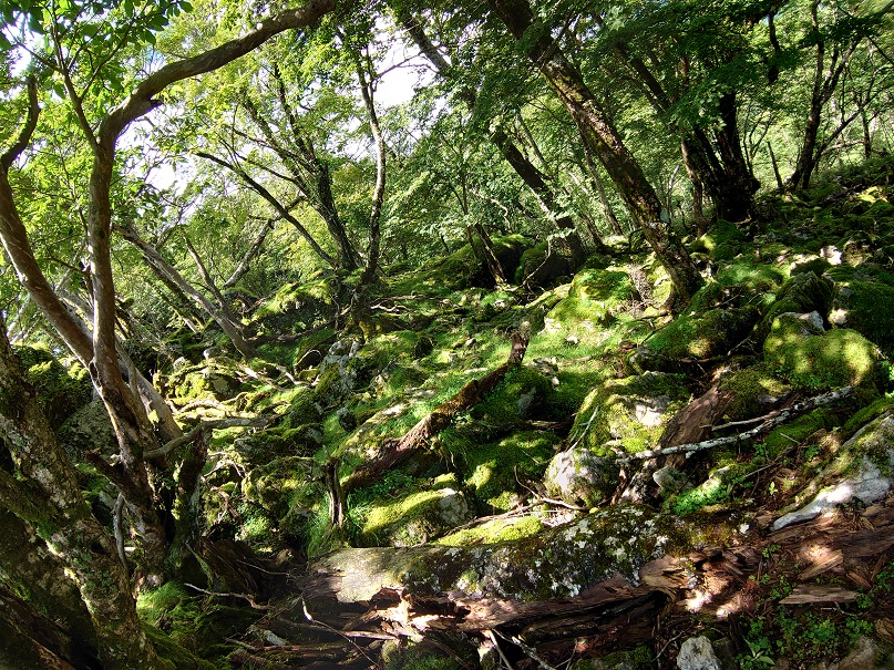 コケの多い岩地帯をくだり剣山を目指します。