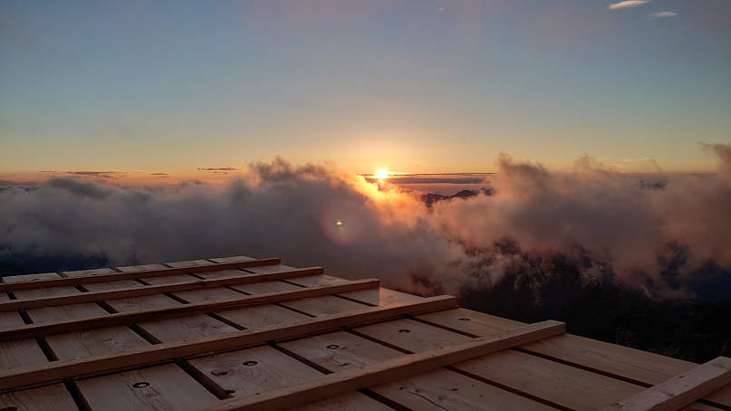 朝4:30頃でしょうか剣山に向かう途中の朝日が出てくるわくわく感