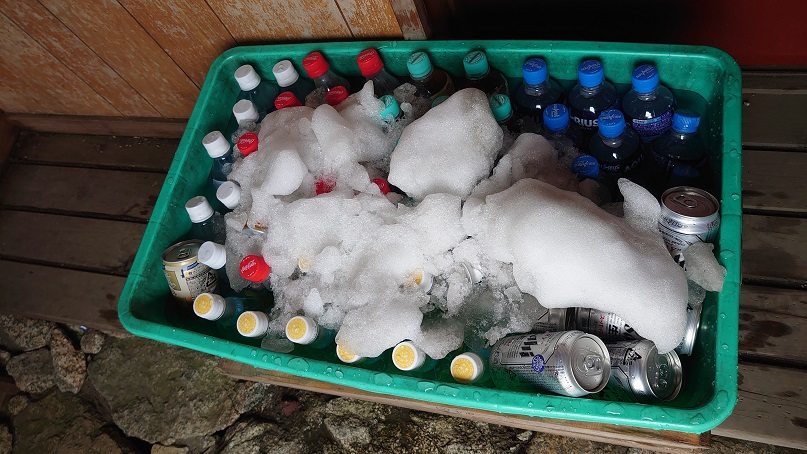 途中の山小屋も雪で冷やしてました!?