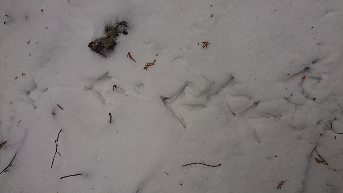 鳥か鹿か猪か?足跡がいたる所にあります、怖いけど、新鮮