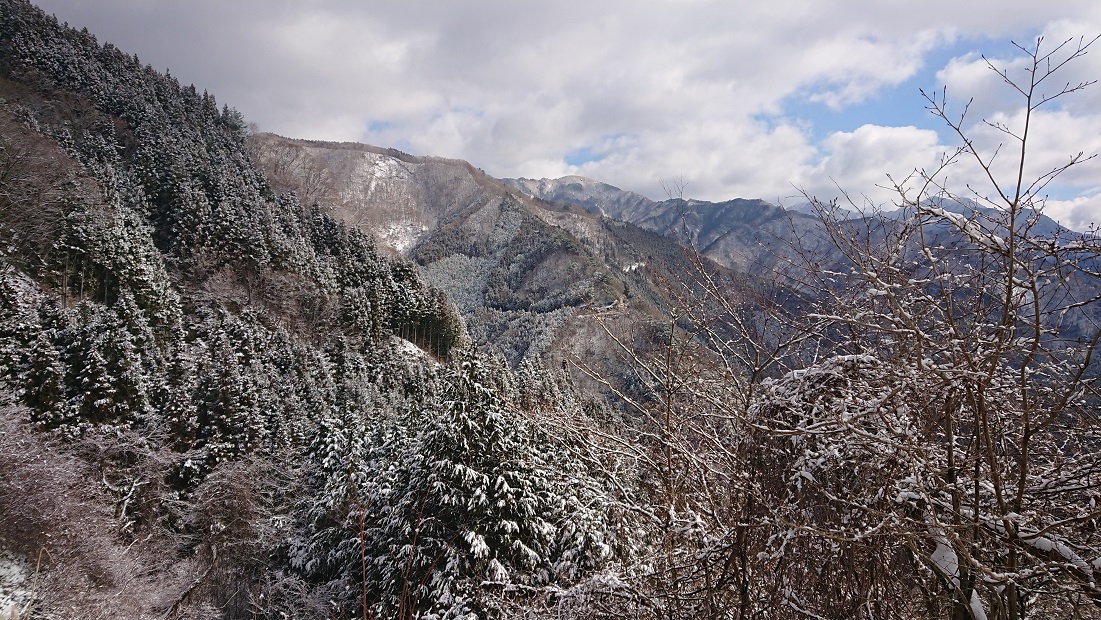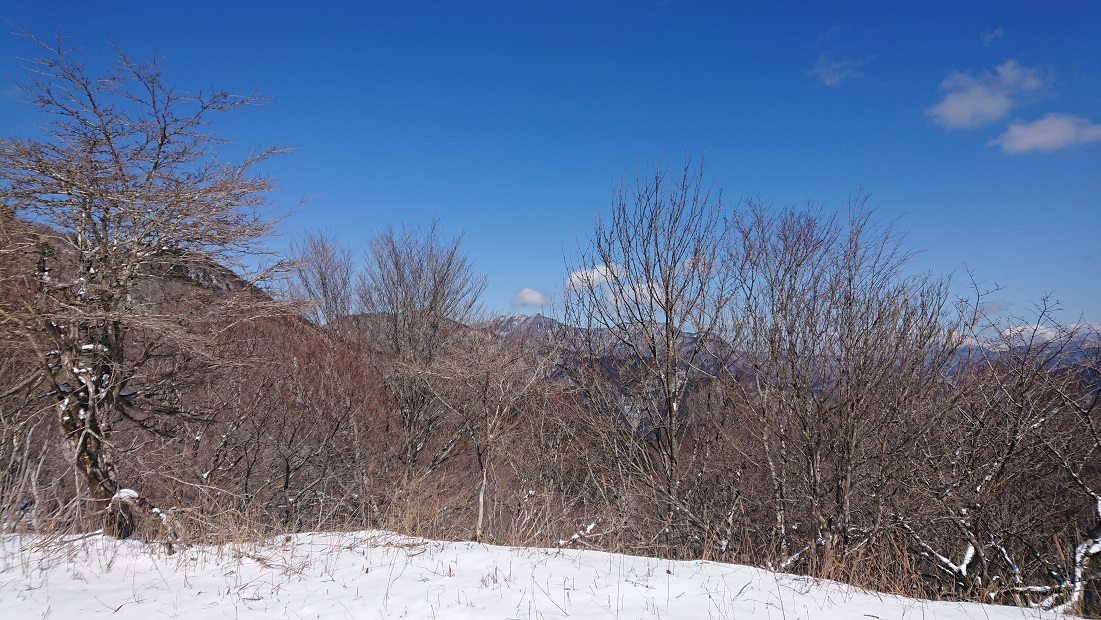 大久保山からの景色、隣の山にも雪が積もっています。