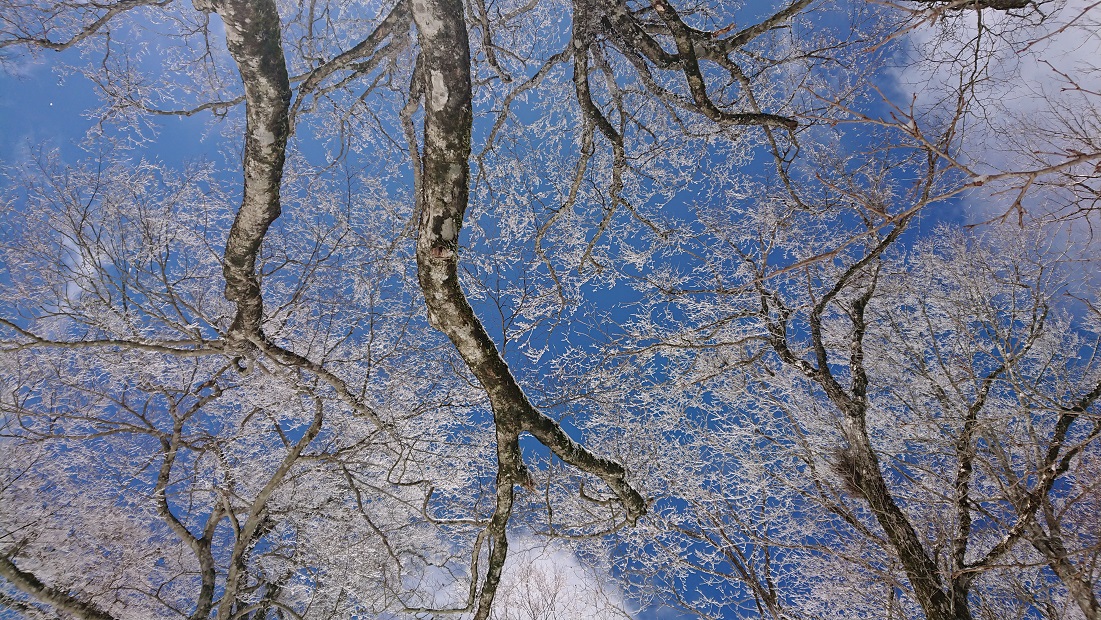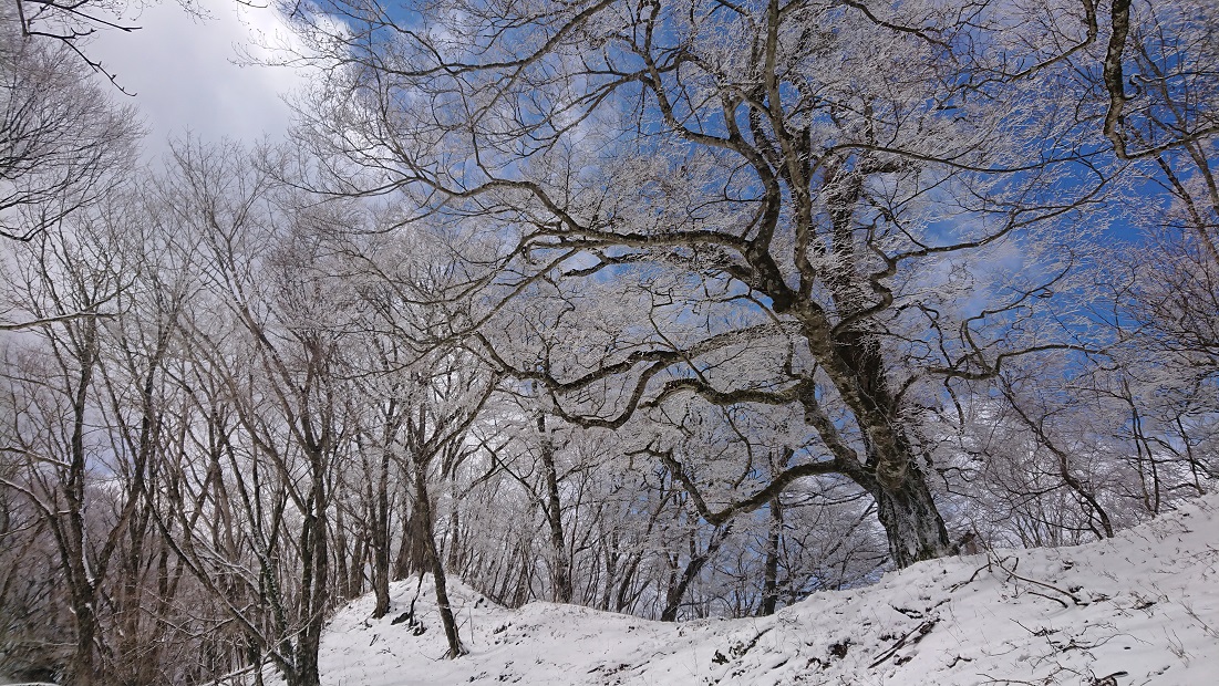 山頂付近で霧氷?よく写真で見る木に雪が積もる綺麗な風景に出会えました。