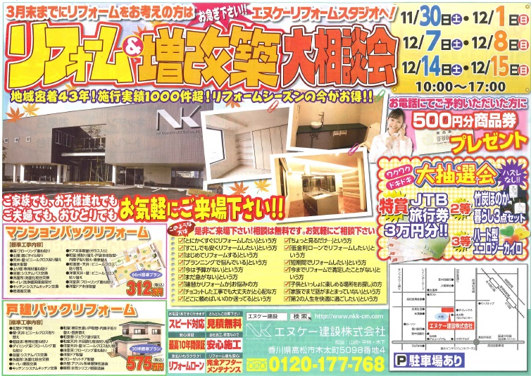 12月7日・8日・14日・15日 リフォーム&増改築 大相談会を開催します!