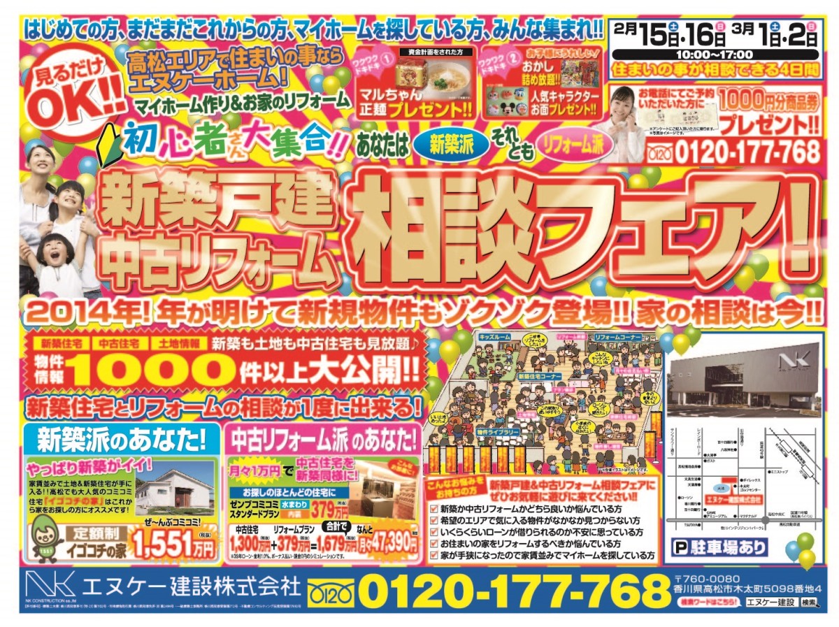 2月15日(土)16日(日)新築戸建・リフォーム相談会をエヌケー建設事務所にて行います。