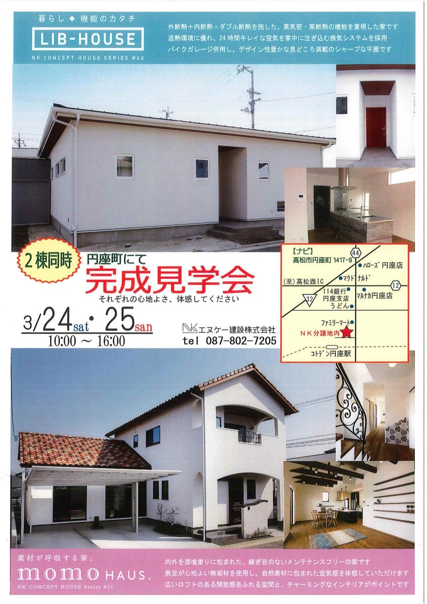 3/24~3/25 円座町にて【2棟同時 完成見学会】心地よさを比べてみてください。