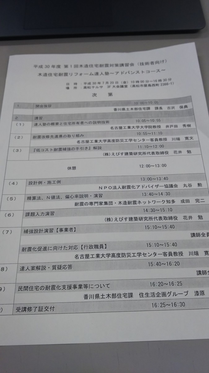 香川県主催の木造住宅耐震対策講習会に参加してきました!!   近年、地震が各地で多発しており香川県も住宅の地震対策を!…